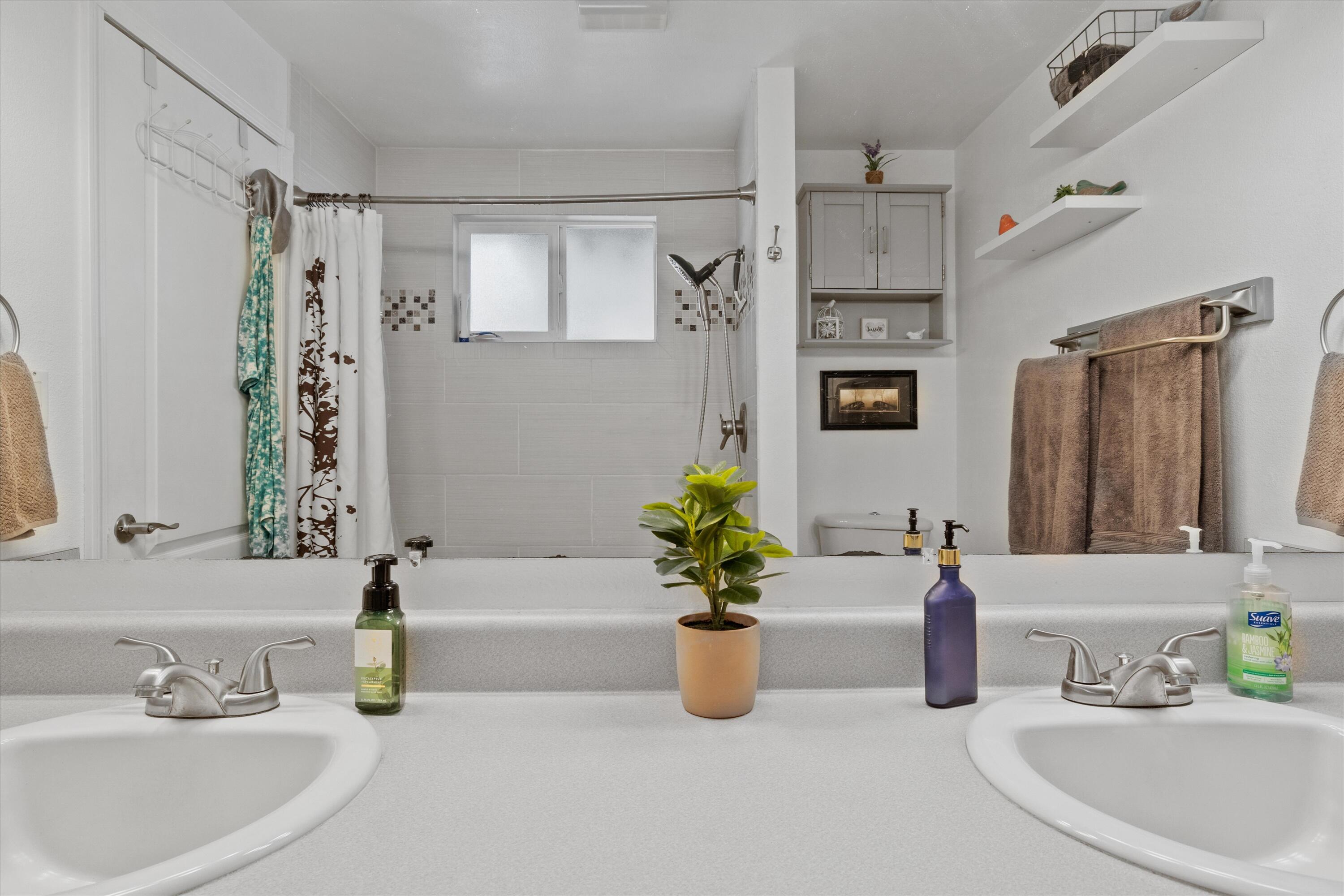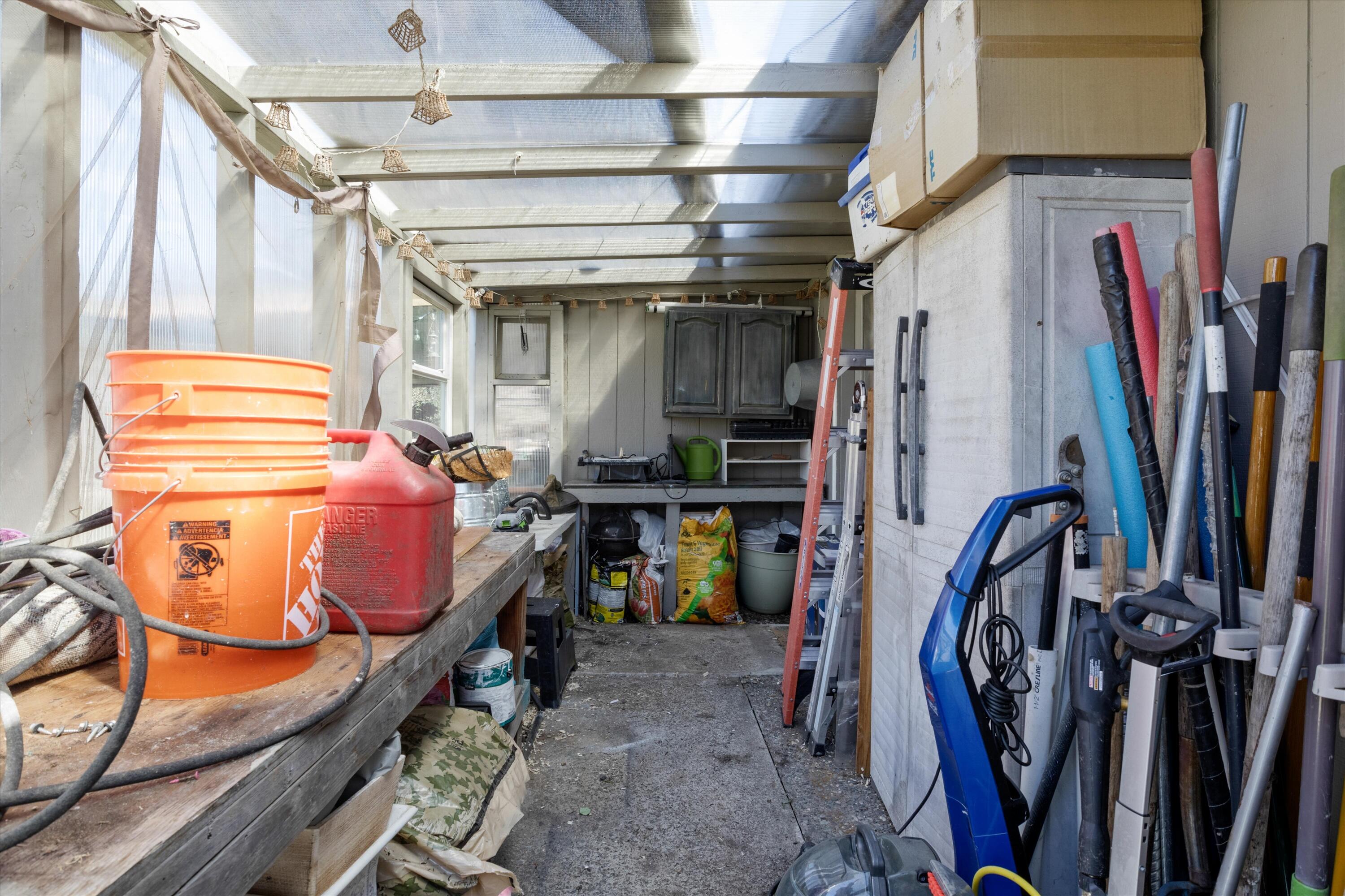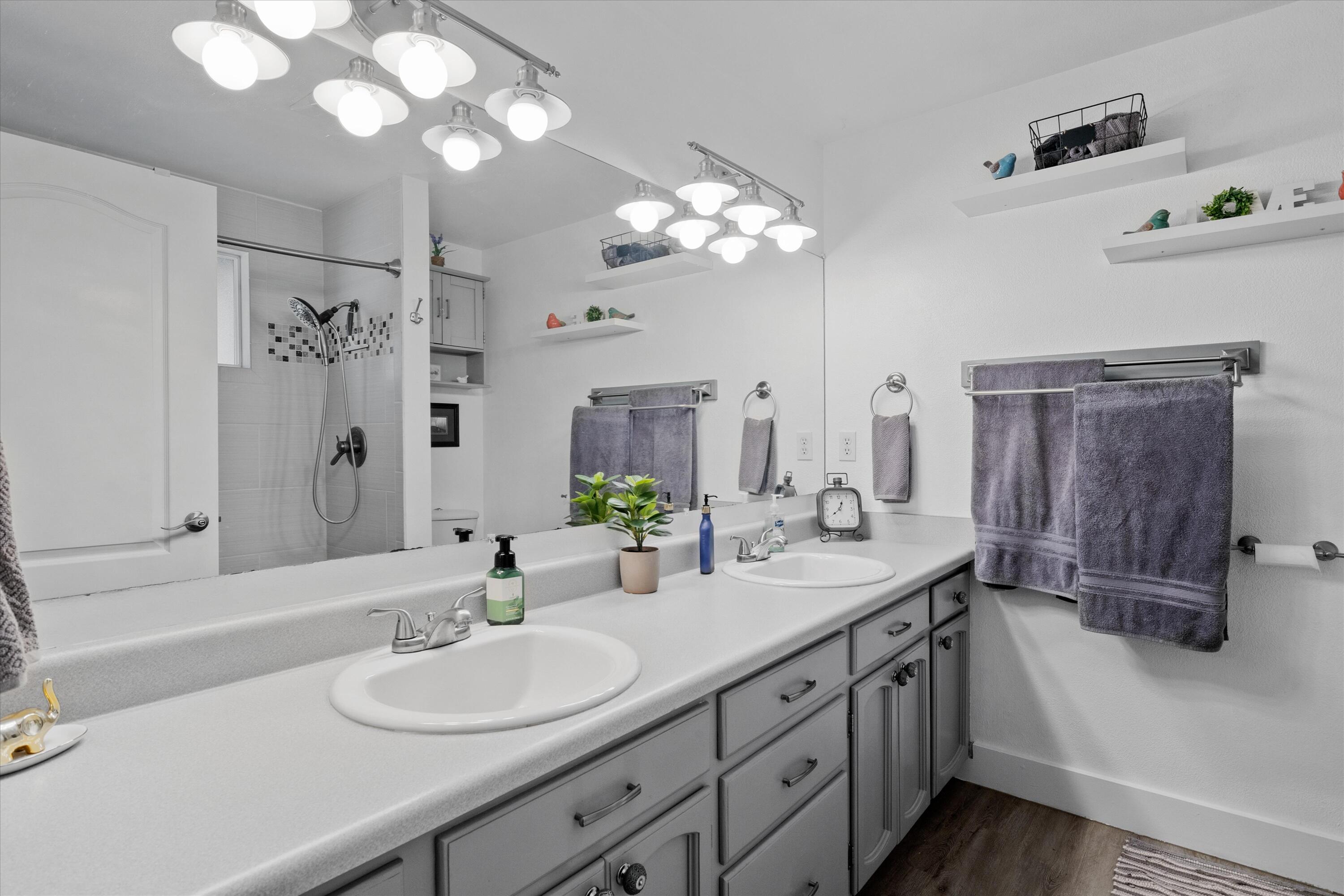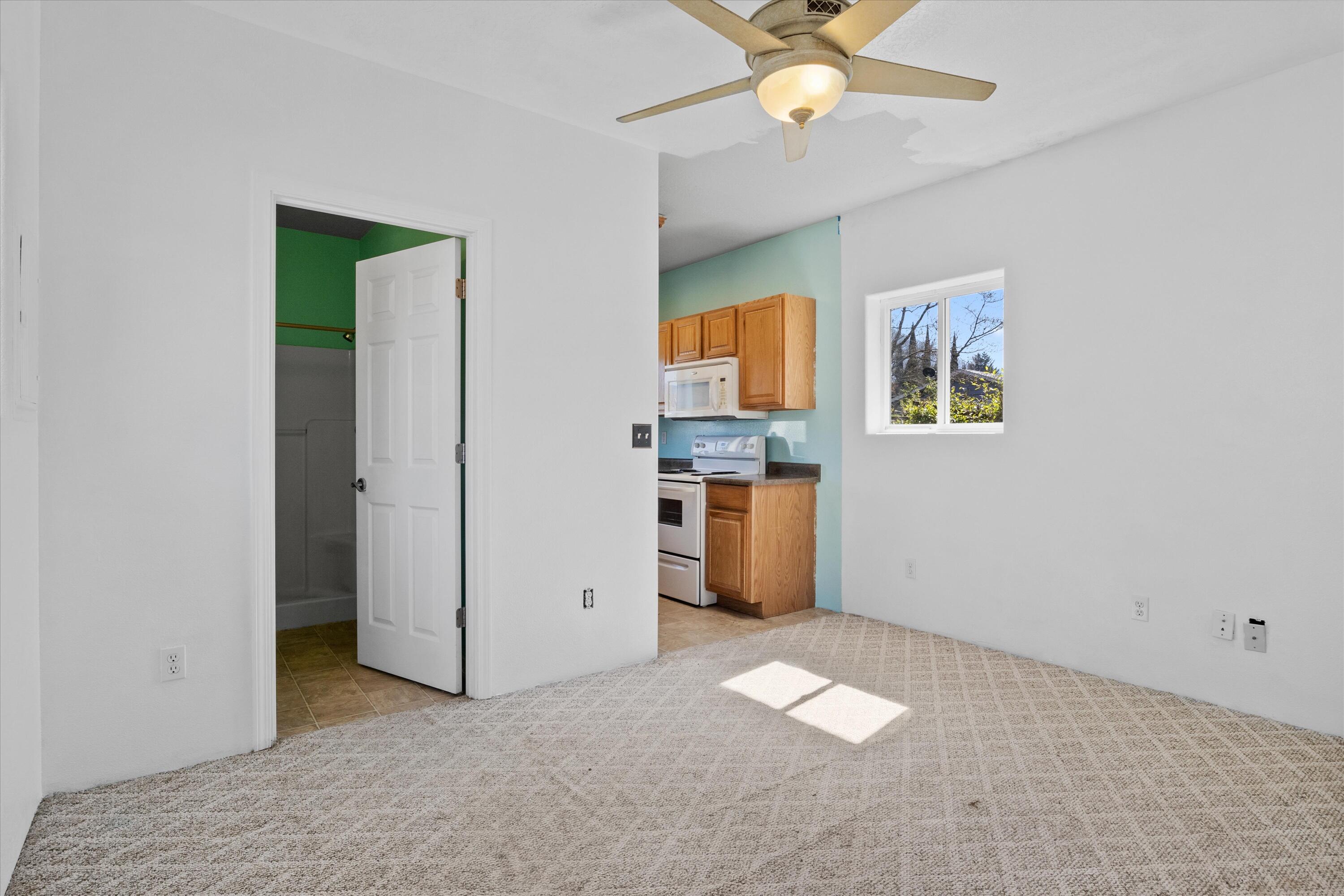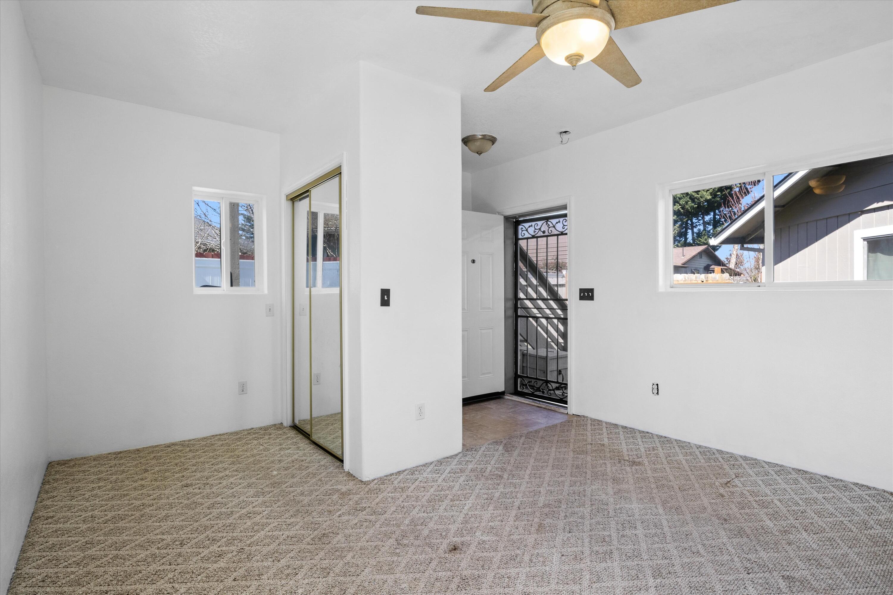 Tremendously Captivating Home with a new roof and Solar Panels, full RV hook-ups, and Detached ADU! Marvelously situated on a 0.35-acre cul-de-sac lot in an established community, this 3BR/2BA property warmly welcomes with a classic exterior color scheme, brilliant red front door, and a neatly manicured fenced-in front yard. Filled with soft natural light, the interior delights with luminous skylights, an open floorplan, vaulted ceilings, beautiful faux wood flooring, and a living room with a wood burning stove. Upgraded to perfection, the kitchen features stainless steel appliances, two-tone cabinets, gas stove, and a dining area. Intended for relaxation, the primary bedroom includes an attached en suite with a dual sink vanity. Multigenerational appeal is found in the detached ADU, which has a 3/4-bathroom and a full kitchen. Other features: 2-car garage with workshop/ storage. The newly fenced-in back yard features paver patio under a gazebo, numerous fruit trees, and chicken coop!