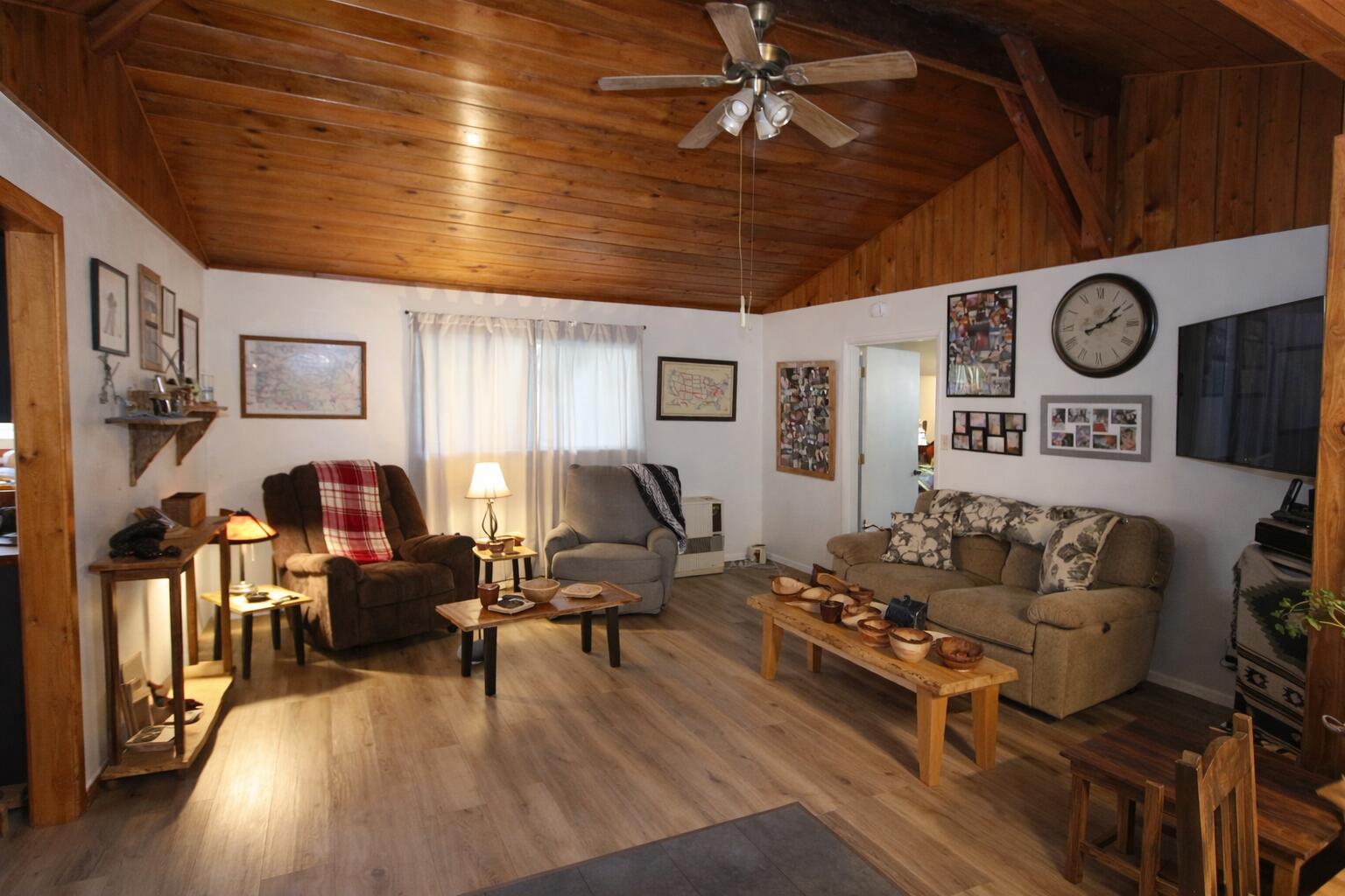 The 2-bedroom, 1-bath home is warm and inviting with rustic wood accents, a functional layout, and abundant natural light. Cozy living spaces flow into a charming kitchen, while large windows frame serene views of the surrounding forest. The home offers comfortable everyday living with plenty of potential to personalize or expand.