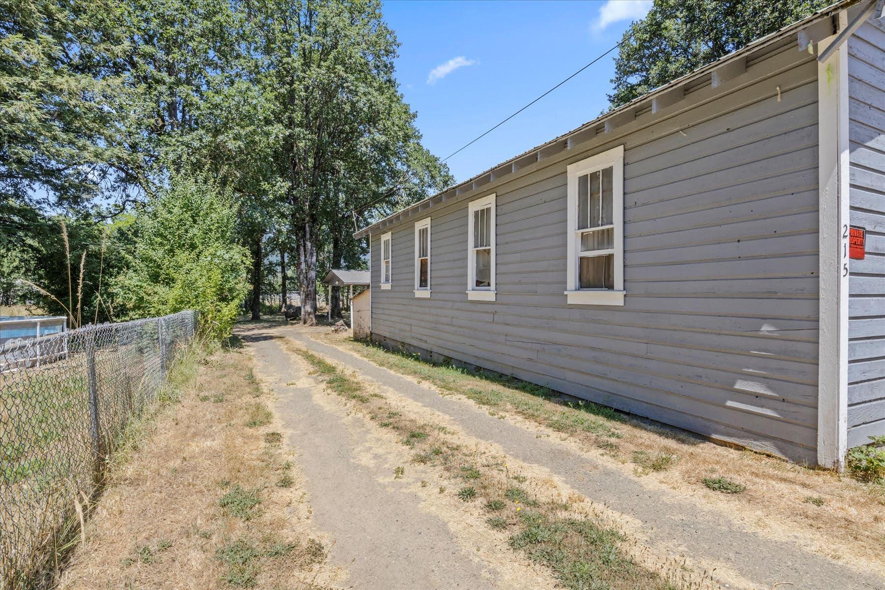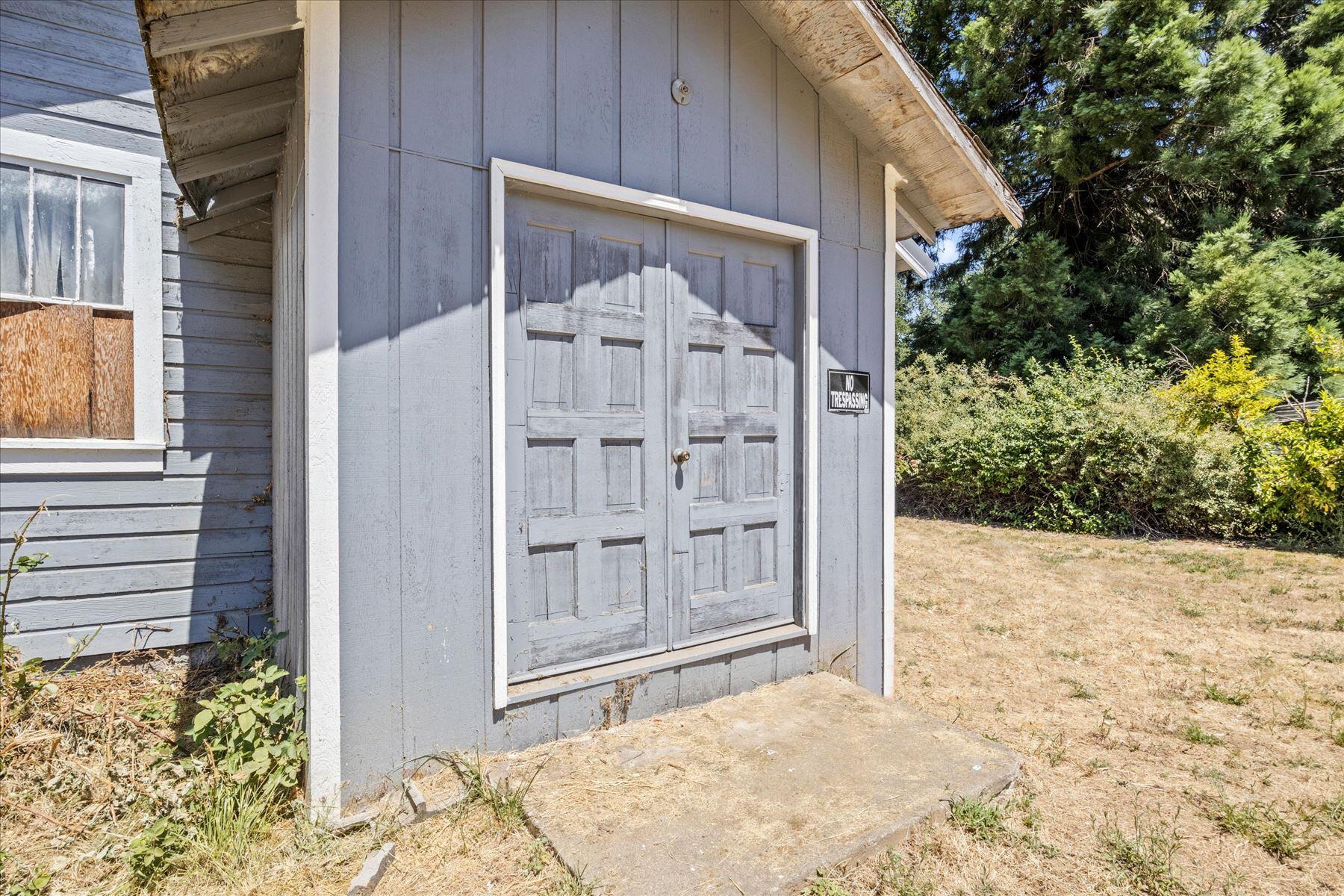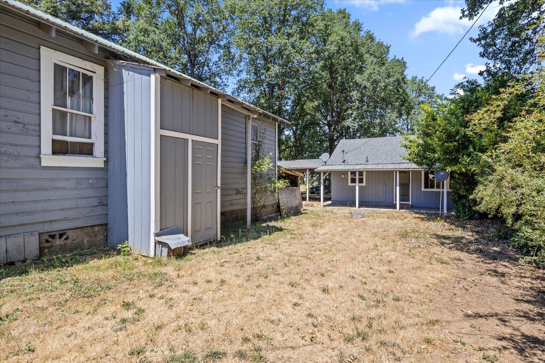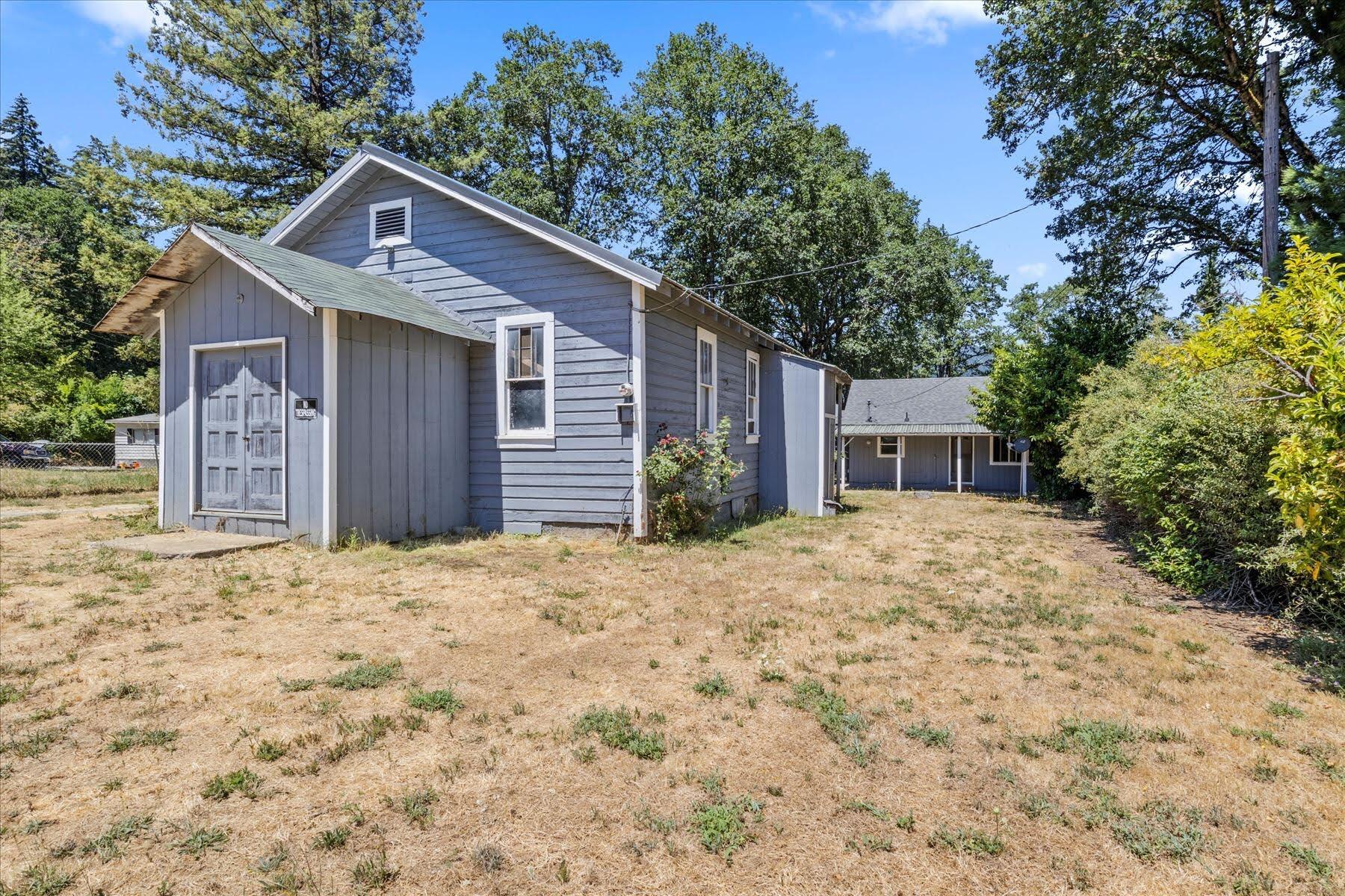 Remarkably Charming and Unique Property in Glendale! Situated on a 0.36-acre lot in a quiet area, this surprisingly versatile property captivates with towering mature trees, plenty of greenspace, a flex building, and a two-bedroom residence. Styled for both form and function, the main home features a covered porch, an open layout, plenty of natural light, neutral paint hues, attractive faux wood flooring, a living area with a wood-burning stove, and a semi-open concept kitchen with black appliances, breakfast bar, and wood cabinetry. Both bedrooms boast dedicated closets and soft carpet, while the bathroom has a storage vanity. Overflowing potential is found in the flex building, which once served as a church. Utilize the structure for storage, or opt to reimagine the interior for a variety of specialized purposes. Other features include a covered carport, ample parking, near schools, restaurants, and parks, and much more! Call now to schedule your tour!