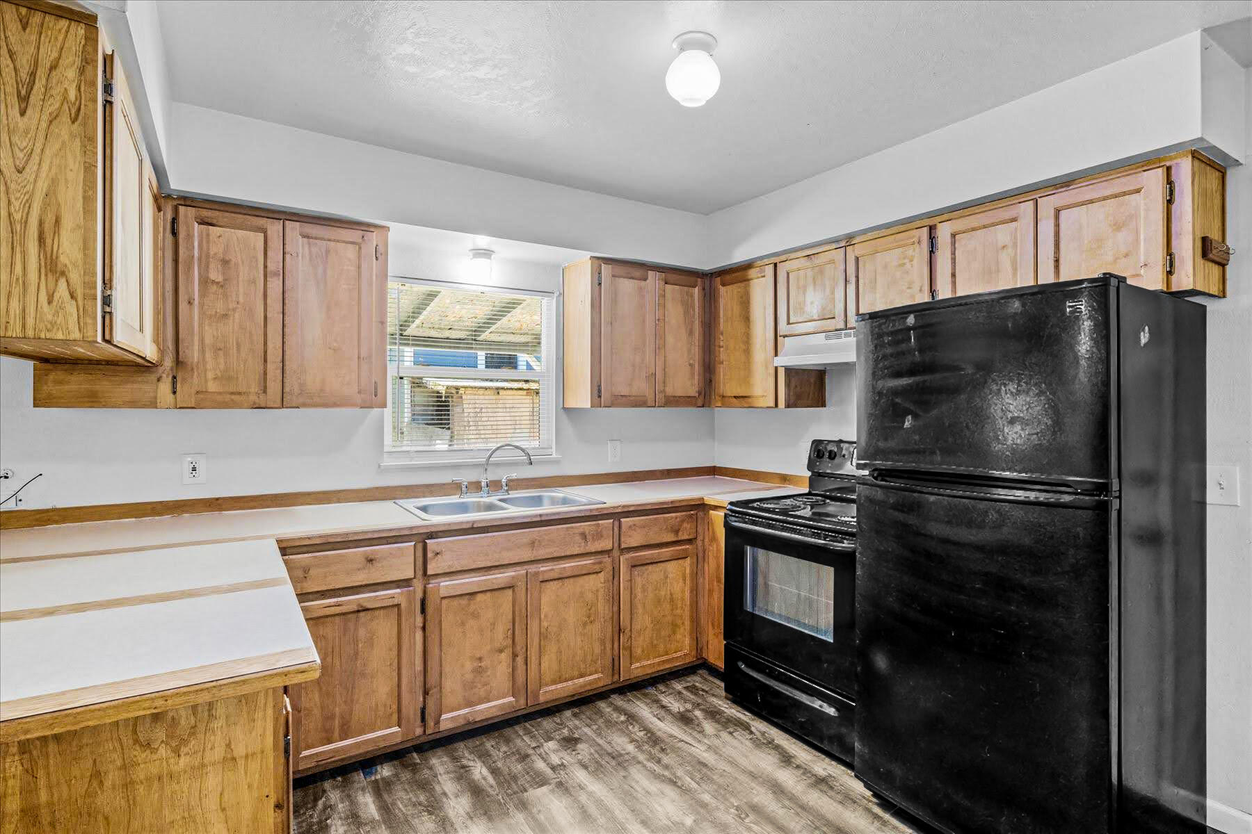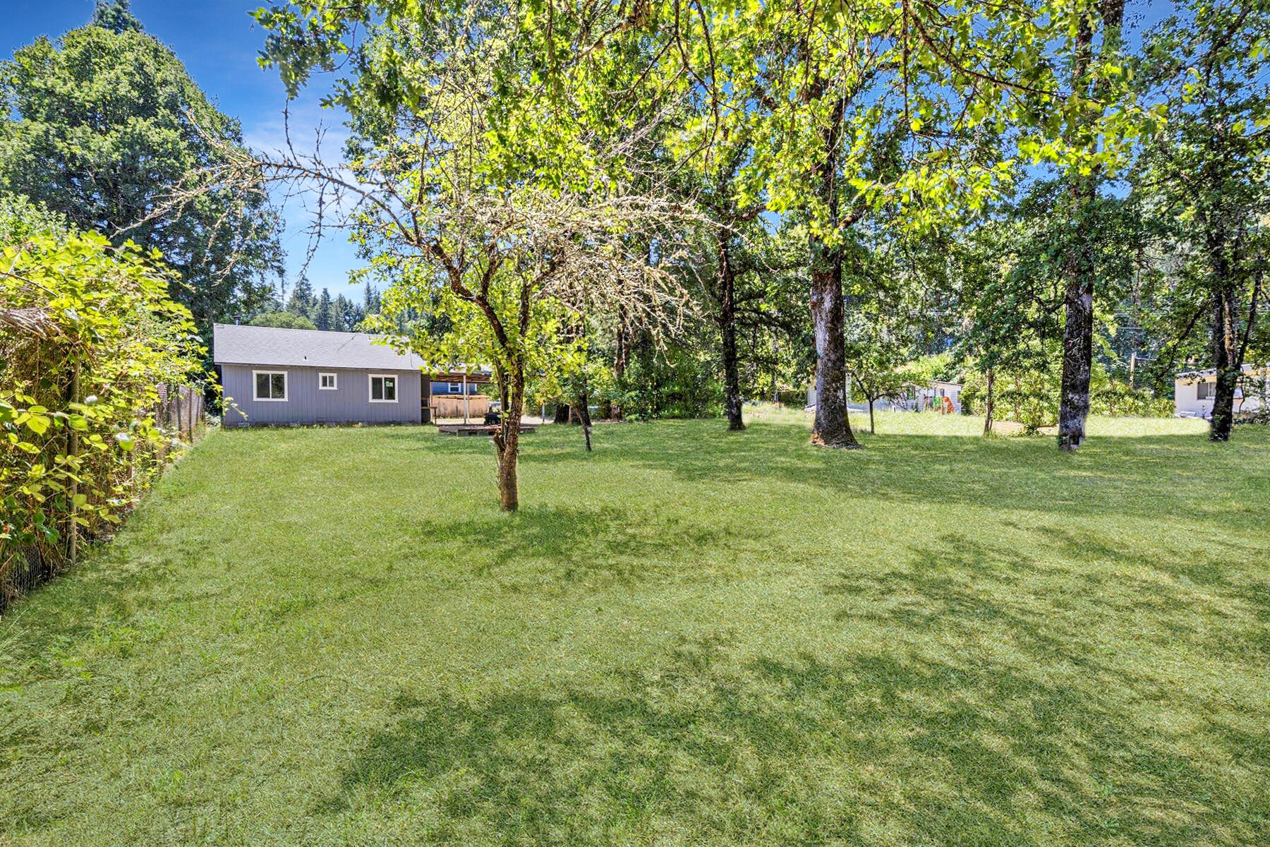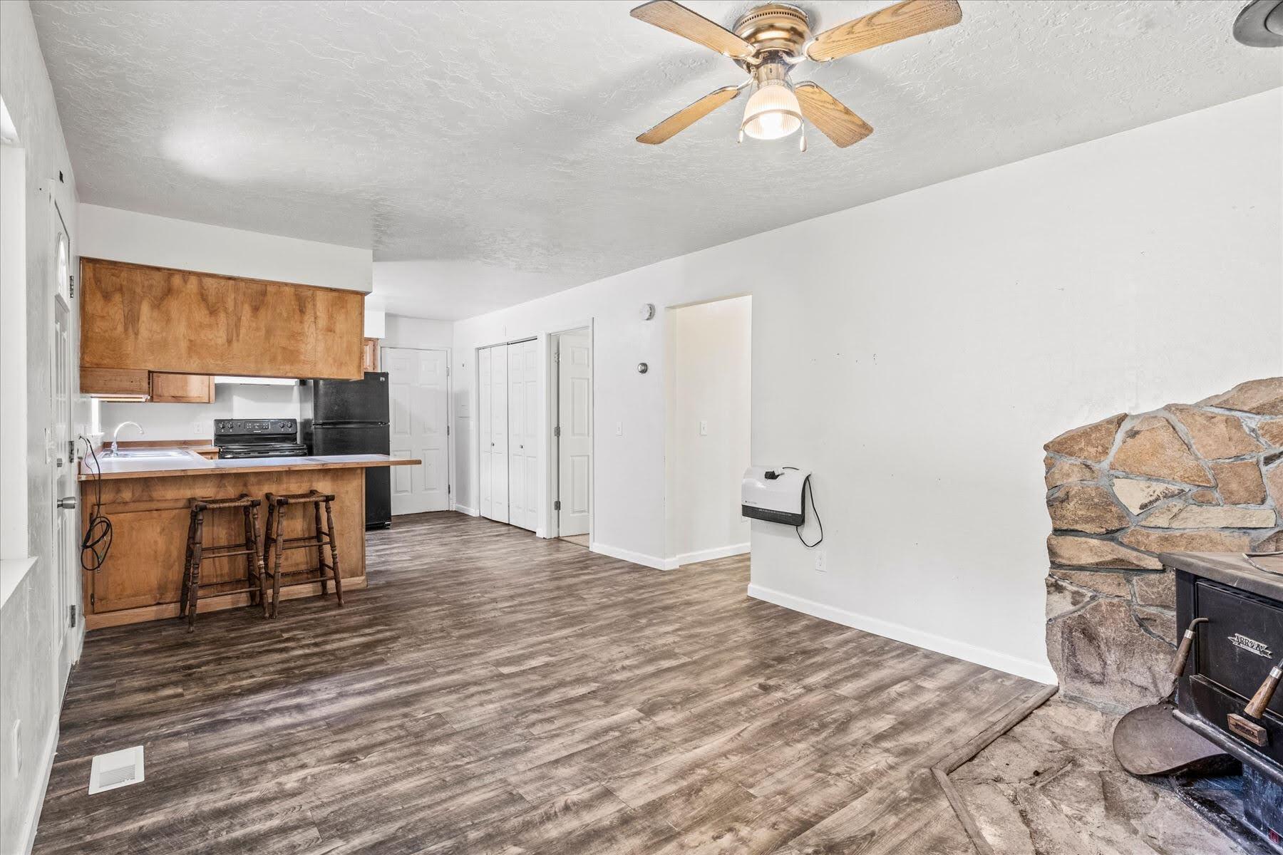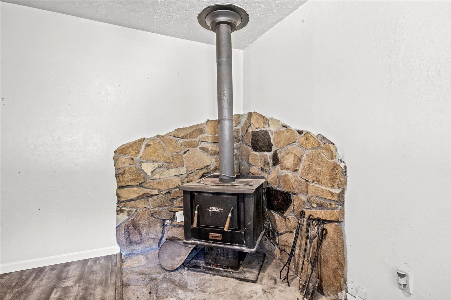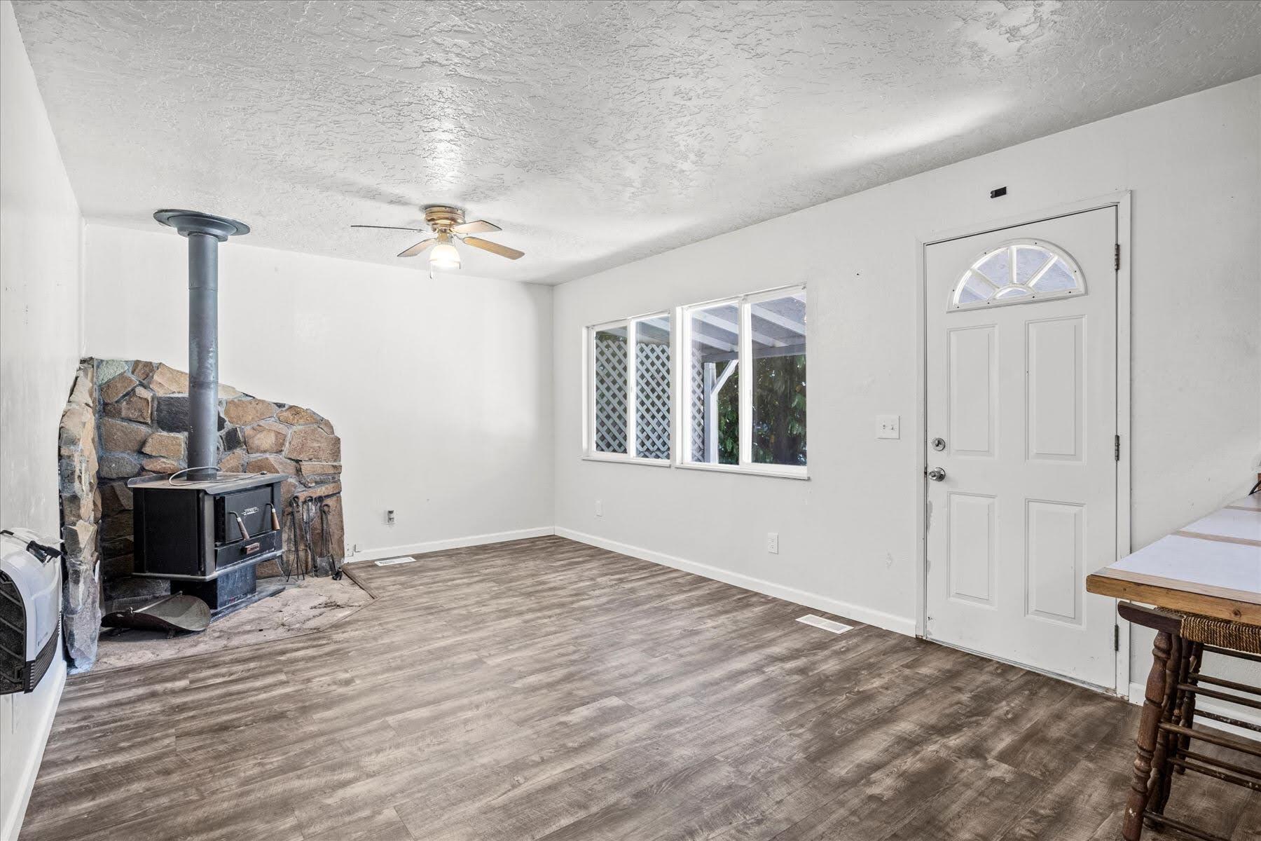 Remarkably Charming and Unique Property in Glendale! Situated on a 0.36-acre lot in a quiet area, this surprisingly versatile property captivates with towering mature trees, plenty of greenspace, a flex building, and a two-bedroom residence. Styled for both form and function, the main home features a covered porch, an open layout, plenty of natural light, neutral paint hues, attractive faux wood flooring, a living area with a wood-burning stove, and a semi-open concept kitchen with black appliances, breakfast bar, and wood cabinetry. Both bedrooms boast dedicated closets and soft carpet, while the bathroom has a storage vanity. Overflowing potential is found in the flex building, which once served as a church. Utilize the structure for storage, or opt to reimagine the interior for a variety of specialized purposes. Other features include a covered carport, ample parking, near schools, restaurants, and parks, and much more! Call now to schedule your tour!