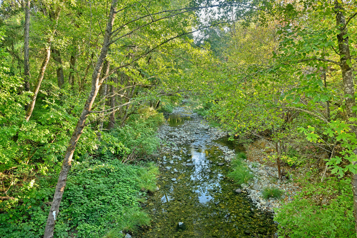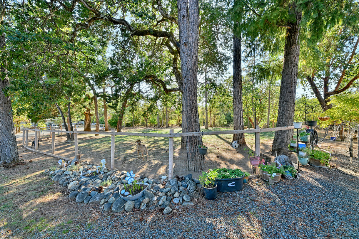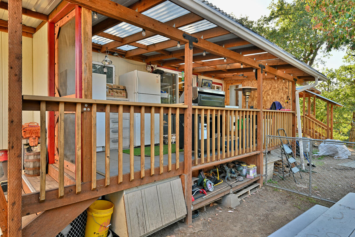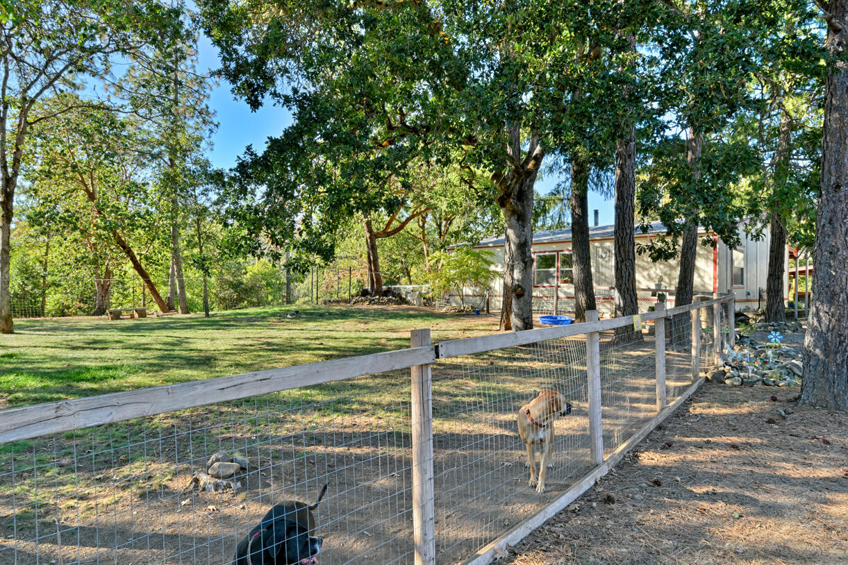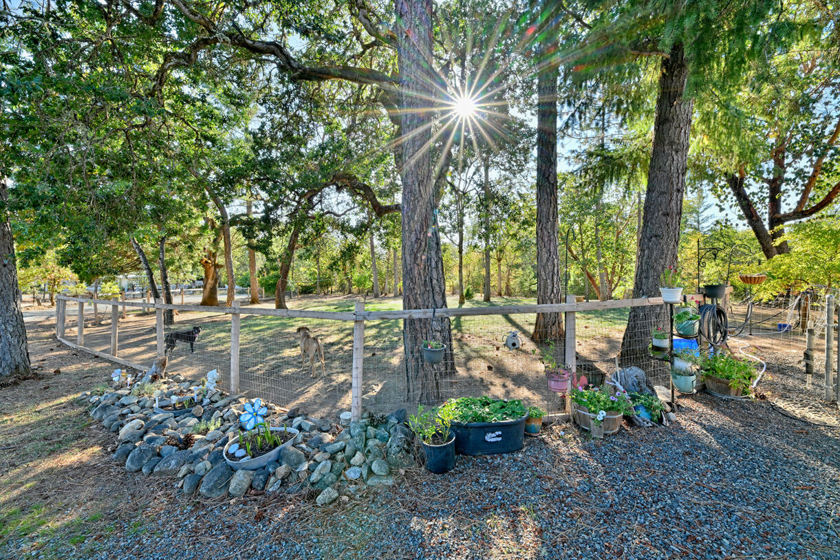 Peaceful country living on five serene acres with Jump Off Joe Creek meandering through the lower portion of the property. The home features vaulted ceilings, abundant natural light, and beautifully updated bedrooms and bathrooms that balance rustic charm with modern comfort. Enjoy a drip-irrigated garden space, greenhouse, and established apple and plum trees. The property includes a 24' x 24' heated detached garage, 12' x 21' Quonset hut, 16' x 12' shed, 8' x 6' pump house with hand pump and storage, plus a shipping container for additional utility. Plenty of room for RV parking, tools, and equipment--offering endless versatility for hobbies or projects. Tools and equipment will be removed by close of escrow. Please only approach property with a scheduled appointment.