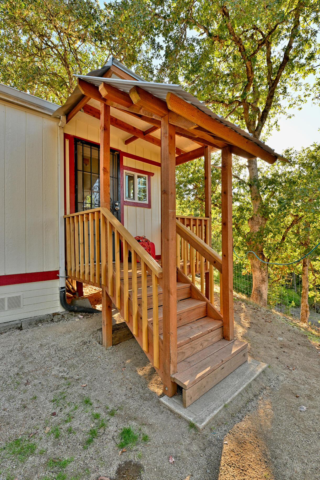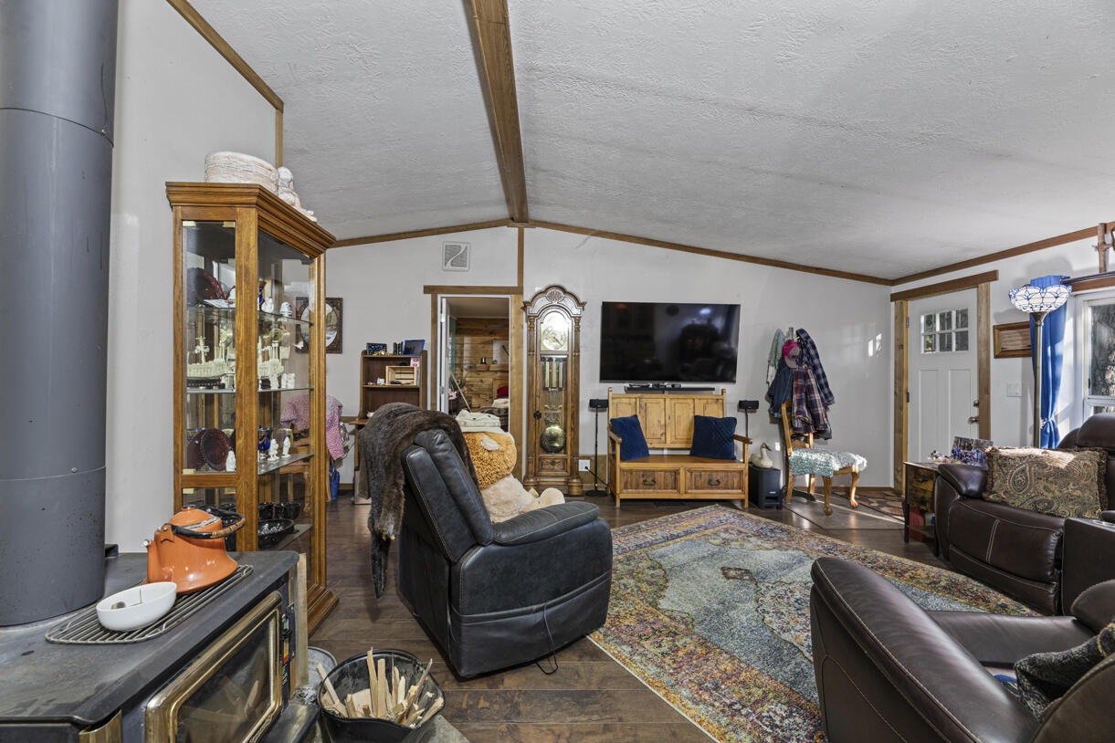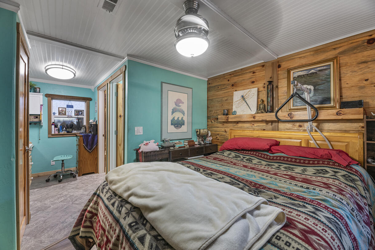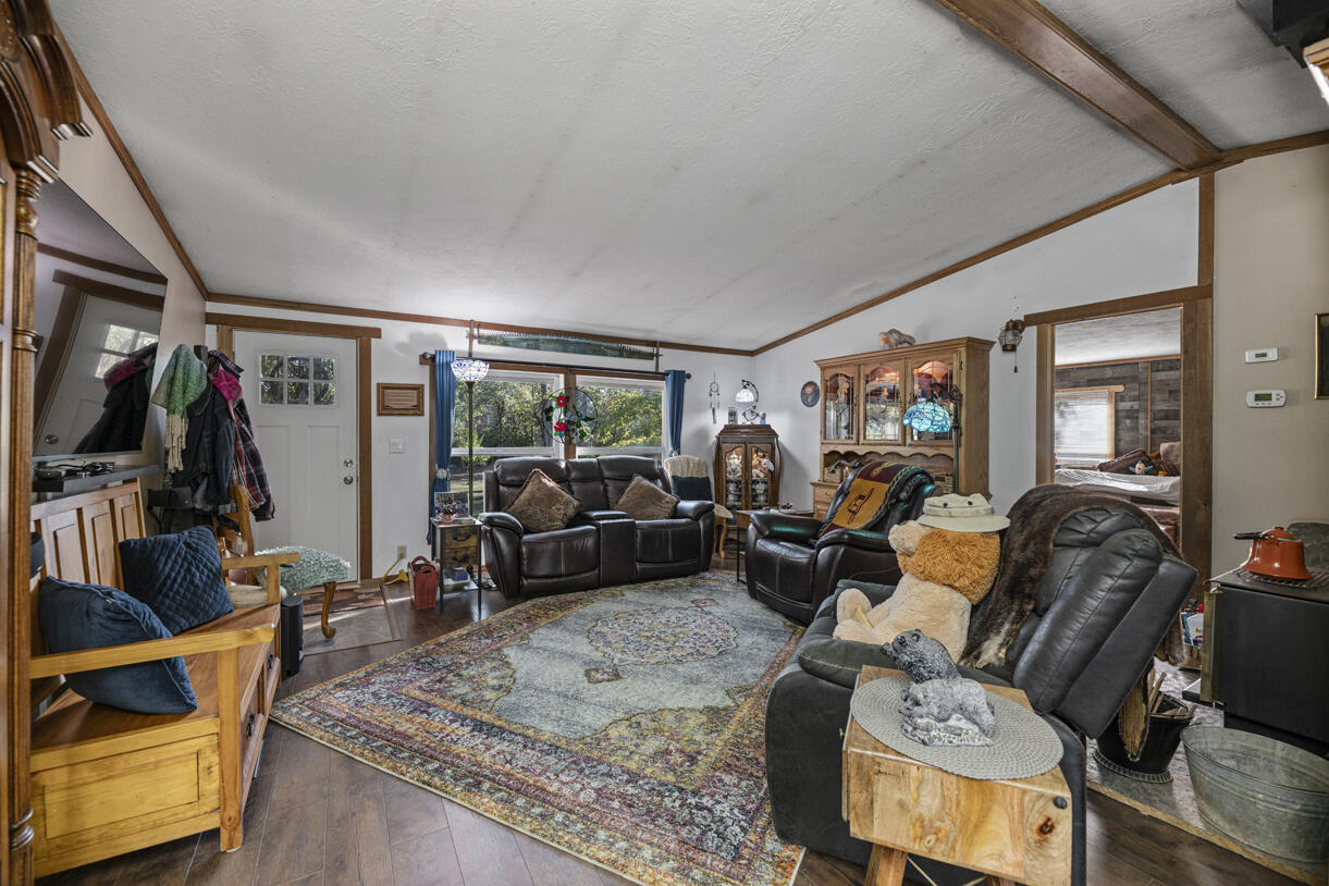 Peaceful country living on five serene acres with Jump Off Joe Creek meandering through the lower portion of the property. The home features vaulted ceilings, abundant natural light, and beautifully updated bedrooms and bathrooms that balance rustic charm with modern comfort. Enjoy a drip-irrigated garden space, greenhouse, and established apple and plum trees. The property includes a 24' x 24' heated detached garage, 12' x 21' Quonset hut, 16' x 12' shed, 8' x 6' pump house with hand pump and storage, plus a shipping container for additional utility. Plenty of room for RV parking, tools, and equipment--offering endless versatility for hobbies or projects. Tools and equipment will be removed by close of escrow. Please only approach property with a scheduled appointment.
