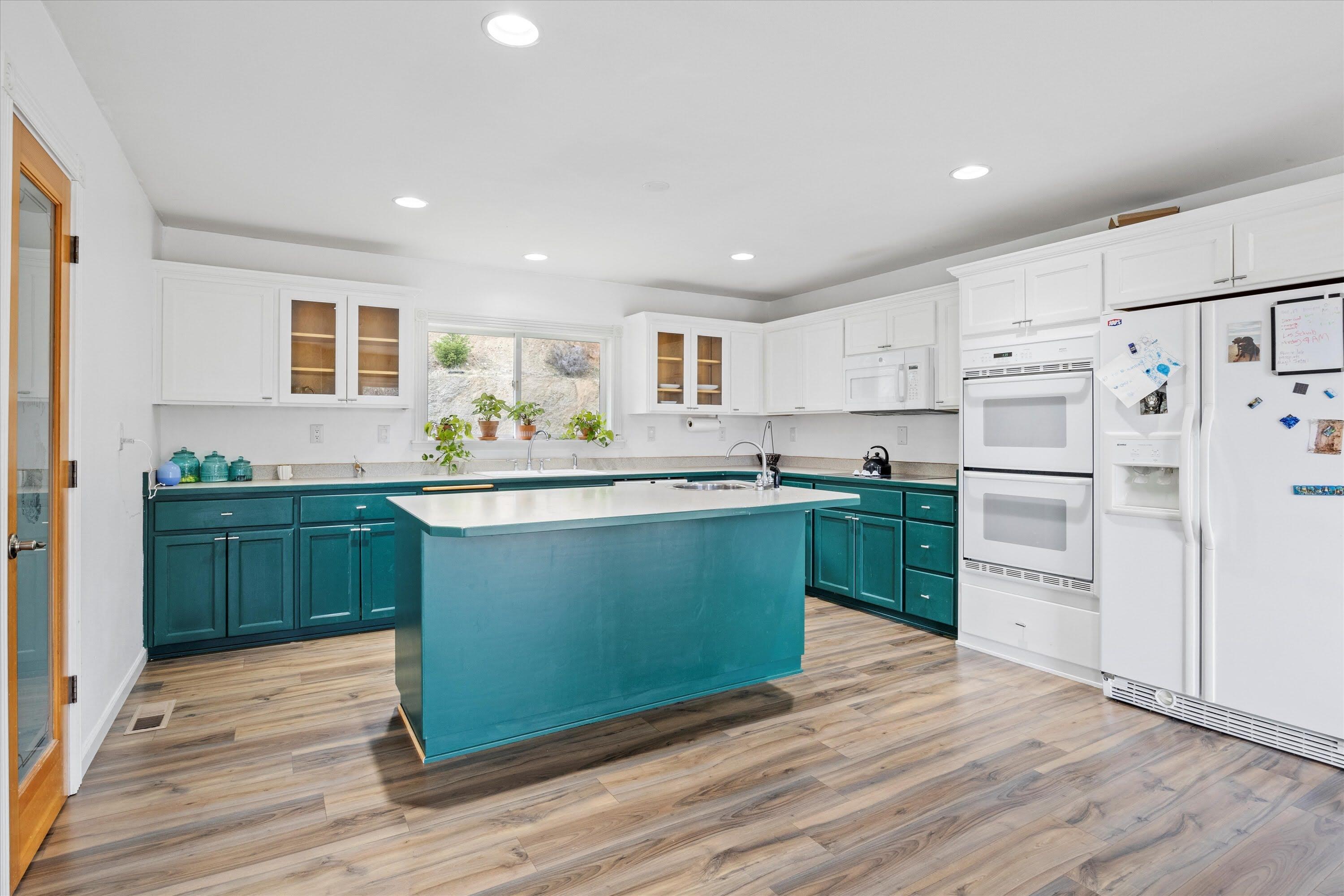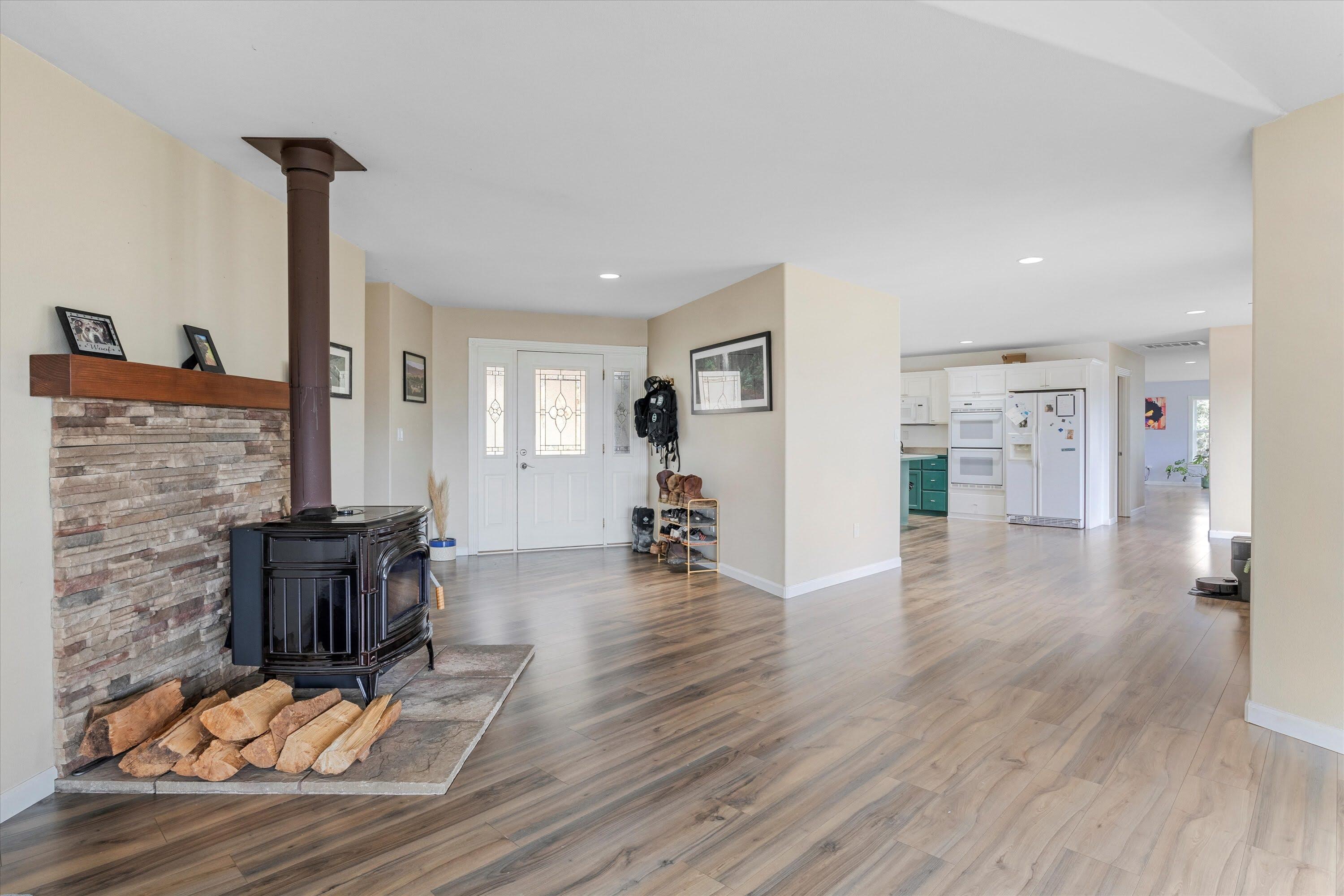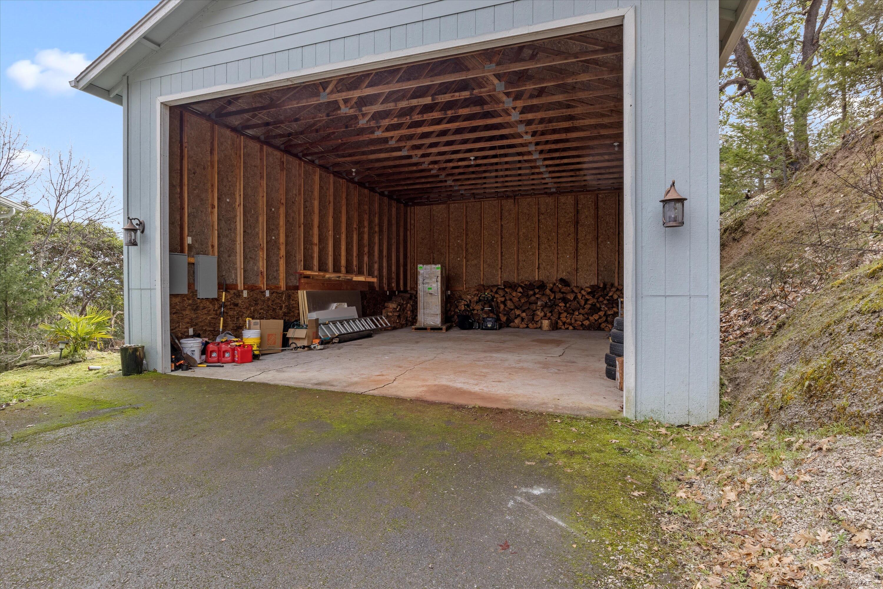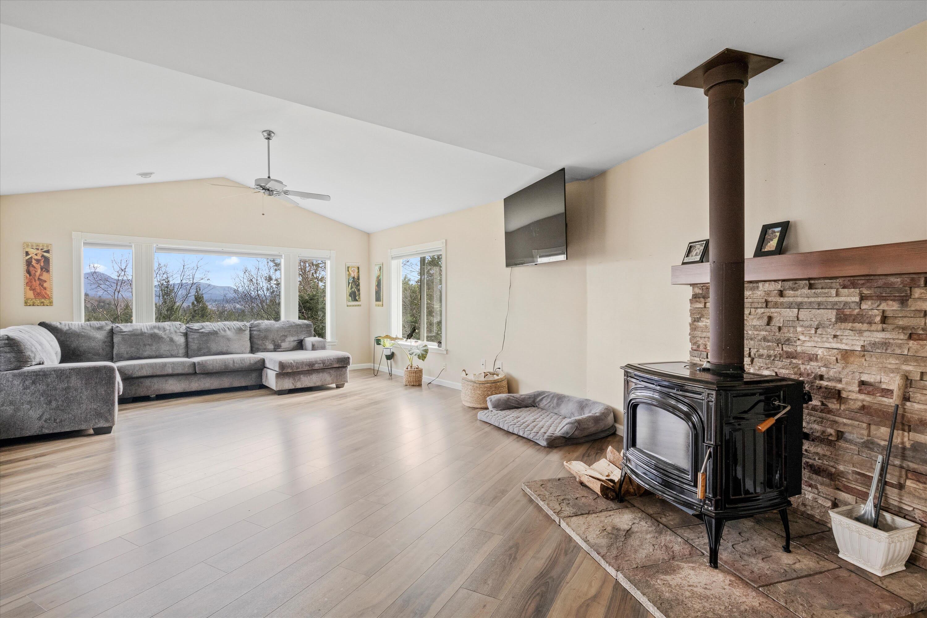 Fabulously Spacious and Updated Home with RV Parking and Extra Detached Garage! Nestled atop a 5.14-acre lot, this 3+BR/2.5+BA residence emanates a rustic aesthetic with a gated entrance, winding driveway, exterior stone accents, and towering mature trees. Marvelously refreshed, the sundrenched interior features gorgeous wood flooring, vaulted ceilings, sizeable family room, and a cozy living room with a wood-burning stove. Cheerful and welcoming, the open concept kitchen includes two-tone cabinetry, breakfast bar island, double wall ovens, and a walk-in pantry. Step outdoors to find an enormous party-perfect deck with glorious landscape views. Relax with ease in the oversized primary bedroom, which has vaulted ceilings, walk-in closet, and an en suite. Partially finished basement with tons of flex space, the walkout basement also has a bathroom, living area, bedroom, and storage. Other considerations: attached garage, detached garage, laundry room, and more! Call now for your tour