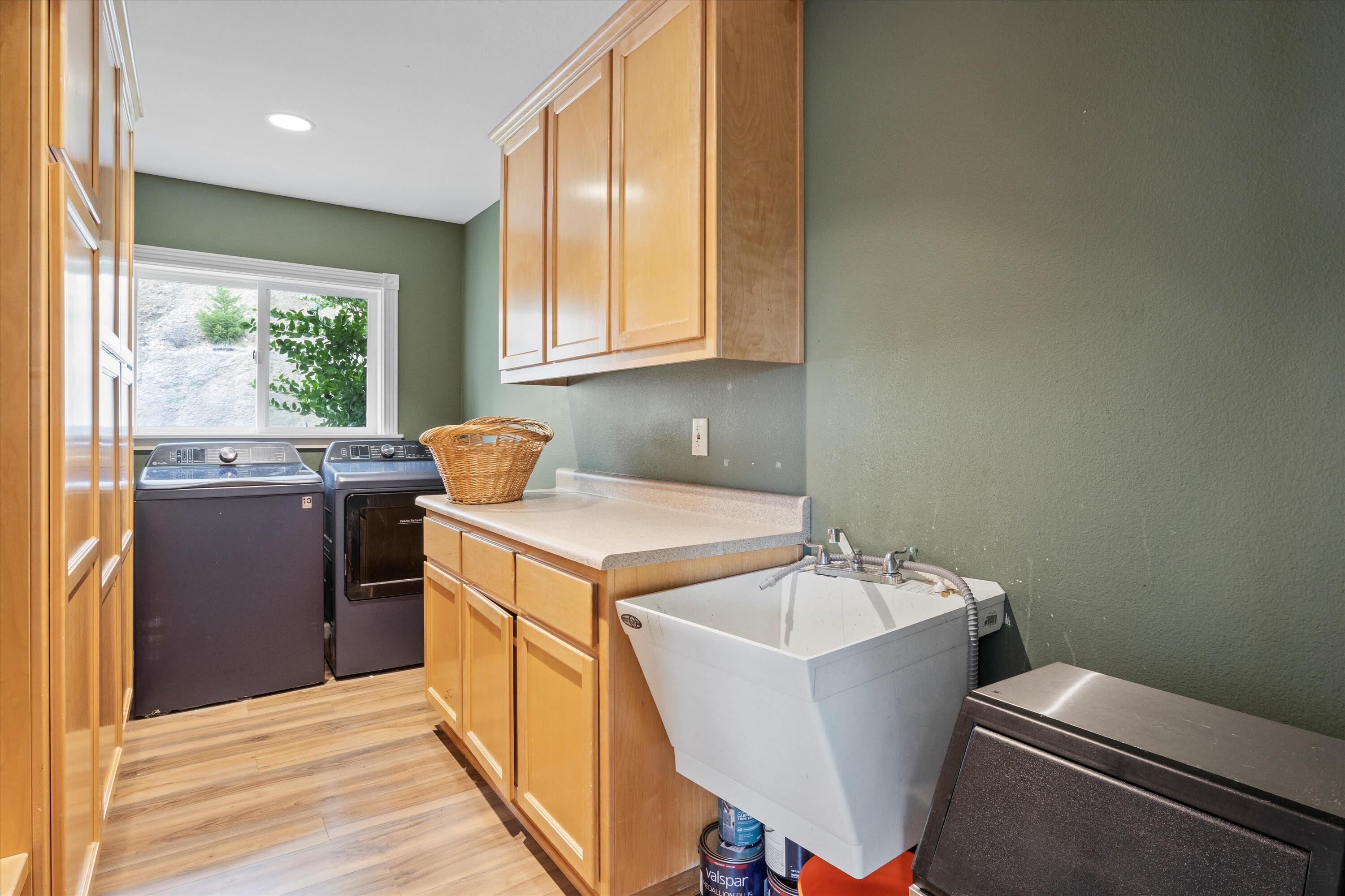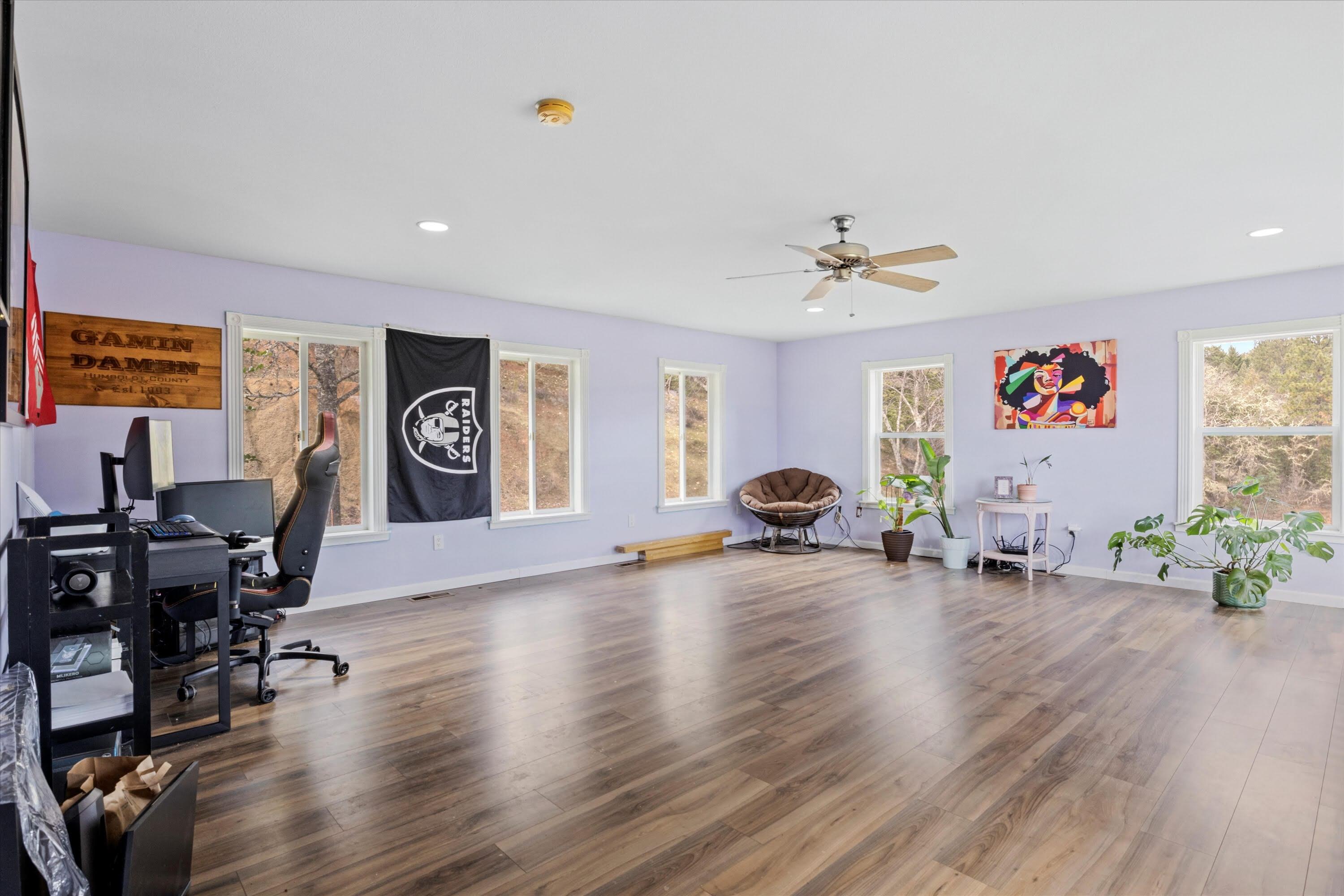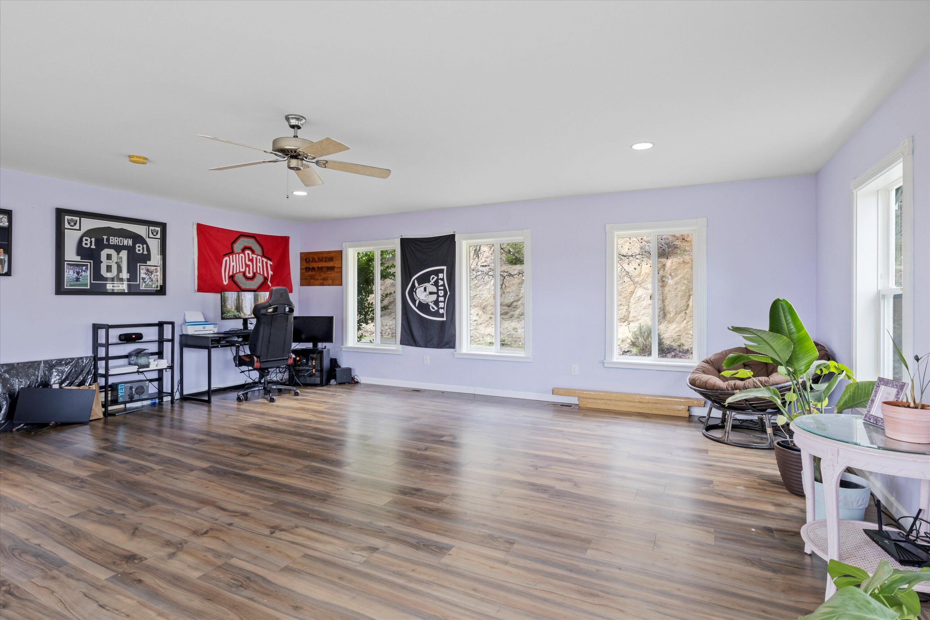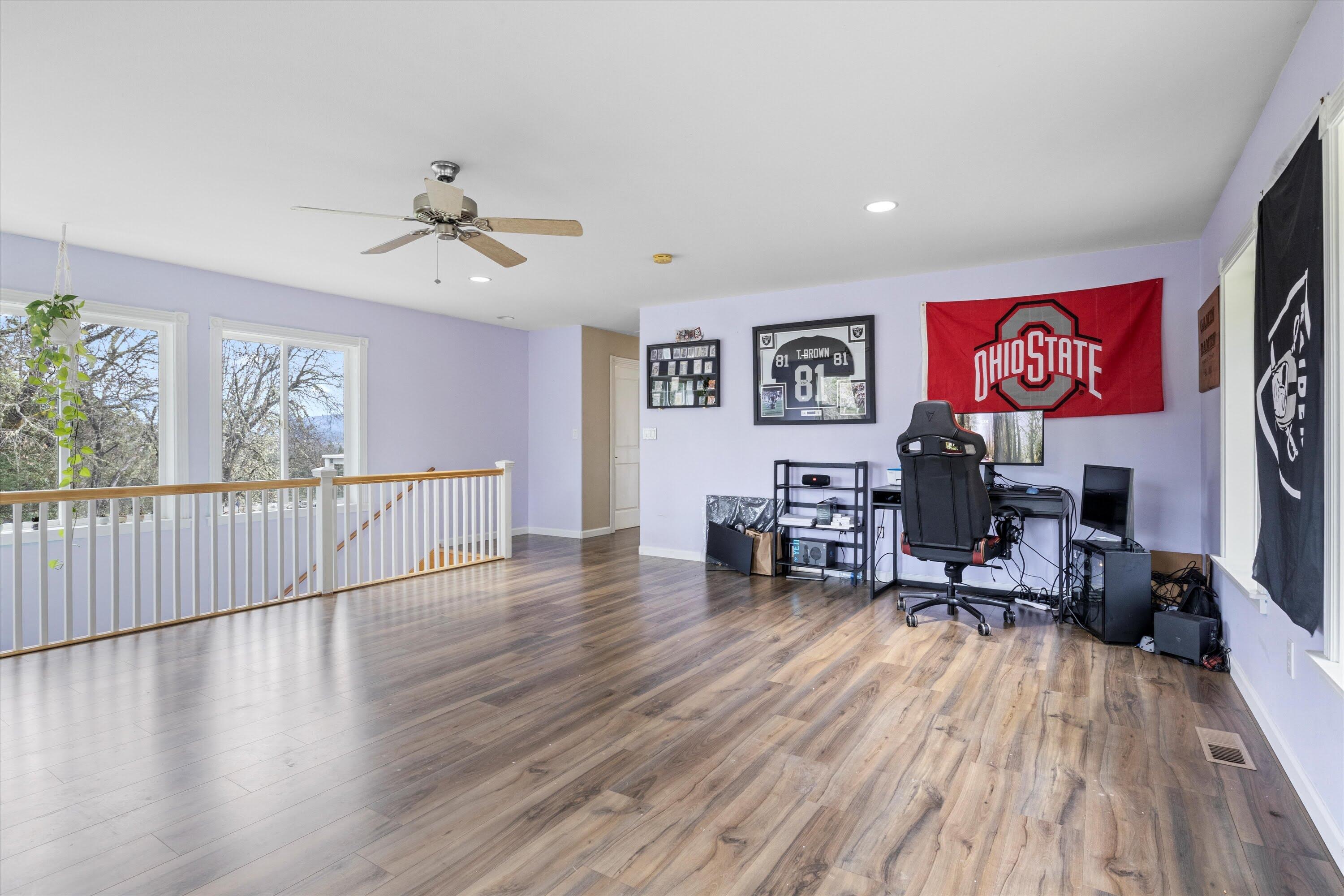 Fabulously Spacious and Updated Home with RV Parking and Extra Detached Garage! Nestled atop a 5.14-acre lot, this 3+BR/2.5+BA residence emanates a rustic aesthetic with a gated entrance, winding driveway, exterior stone accents, and towering mature trees. Marvelously refreshed, the sundrenched interior features gorgeous wood flooring, vaulted ceilings, sizeable family room, and a cozy living room with a wood-burning stove. Cheerful and welcoming, the open concept kitchen includes two-tone cabinetry, breakfast bar island, double wall ovens, and a walk-in pantry. Step outdoors to find an enormous party-perfect deck with glorious landscape views. Relax with ease in the oversized primary bedroom, which has vaulted ceilings, walk-in closet, and an en suite. Partially finished basement with tons of flex space, the walkout basement also has a bathroom, living area, bedroom, and storage. Other considerations: attached garage, detached garage, laundry room, and more! Call now for your tour