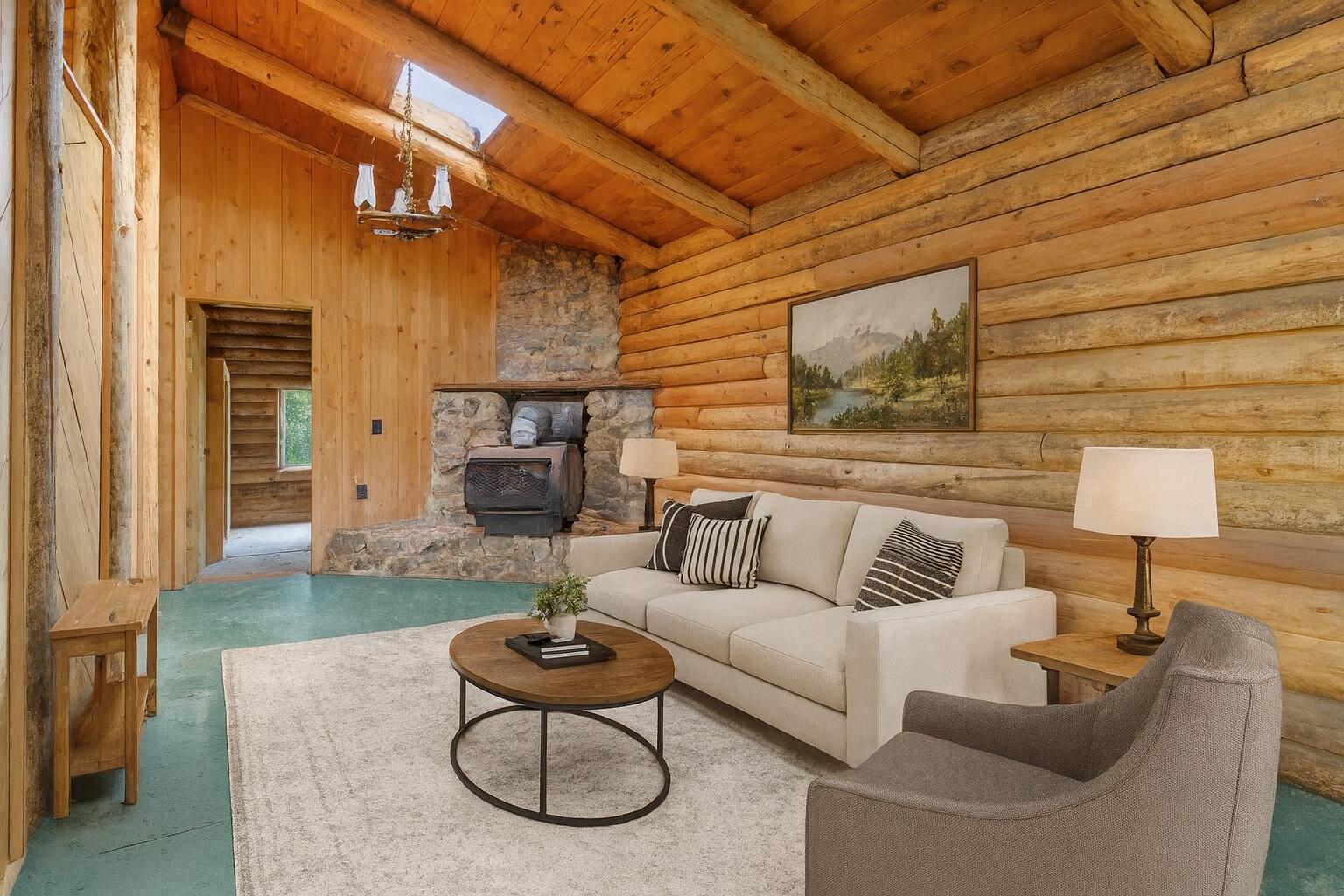 Wonderfully Rustic Log Cabin with 120-acres! Serenely located in a rural area just 13.5-miles from Downtown Grants Pass, this unique property affords both natural beauty and abundant privacy. Originally hand-built and ready for fresh updates, the 2BR/1BA, 880sqft log cabin welcomes with a covered porch, high vaulted ceilings, luminous skylights, wood-burning rock fireplace, a large living room, sizeable windows, a camp-style kitchen, two spacious bedrooms, and a full bathroom with a shower/tub combo. Explore the sprawling acreage to discover a private pond, tons of hiking/walking trails. Little Cheney Creek runs through the property. Hobbyists are sure to enjoy the ample possibilities of the detached 768sqft garage/workshop. Whether you are seeking a secluded retreat or an amazing investment opportunity, this rarely-available property delivers outstanding options. Call now to schedule your showing!